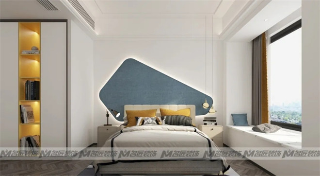 黑白灰不應(yīng)該是永遠的百搭色,我們的眼睛需要另外一種更加治愈的顏色。設(shè)計師運用時髦的亮黃色與藍色,讓專屬于孩子的睡眠空間溫暖而有時尚感。整體在軟裝和墻體的條型的映襯下格外明朗。