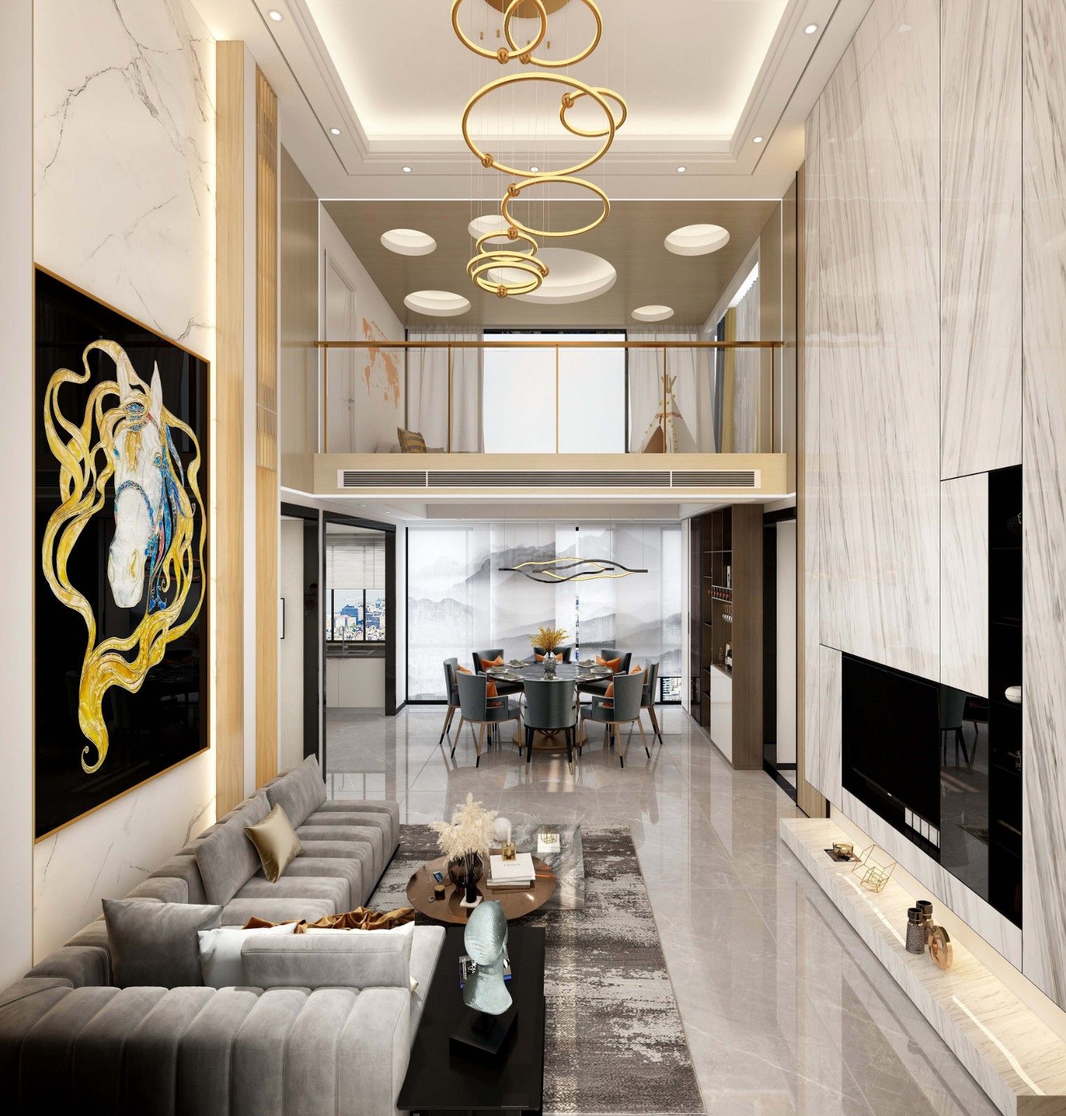 廣州都湖國際臨湖峯復式現代簡約風格裝修效果圖