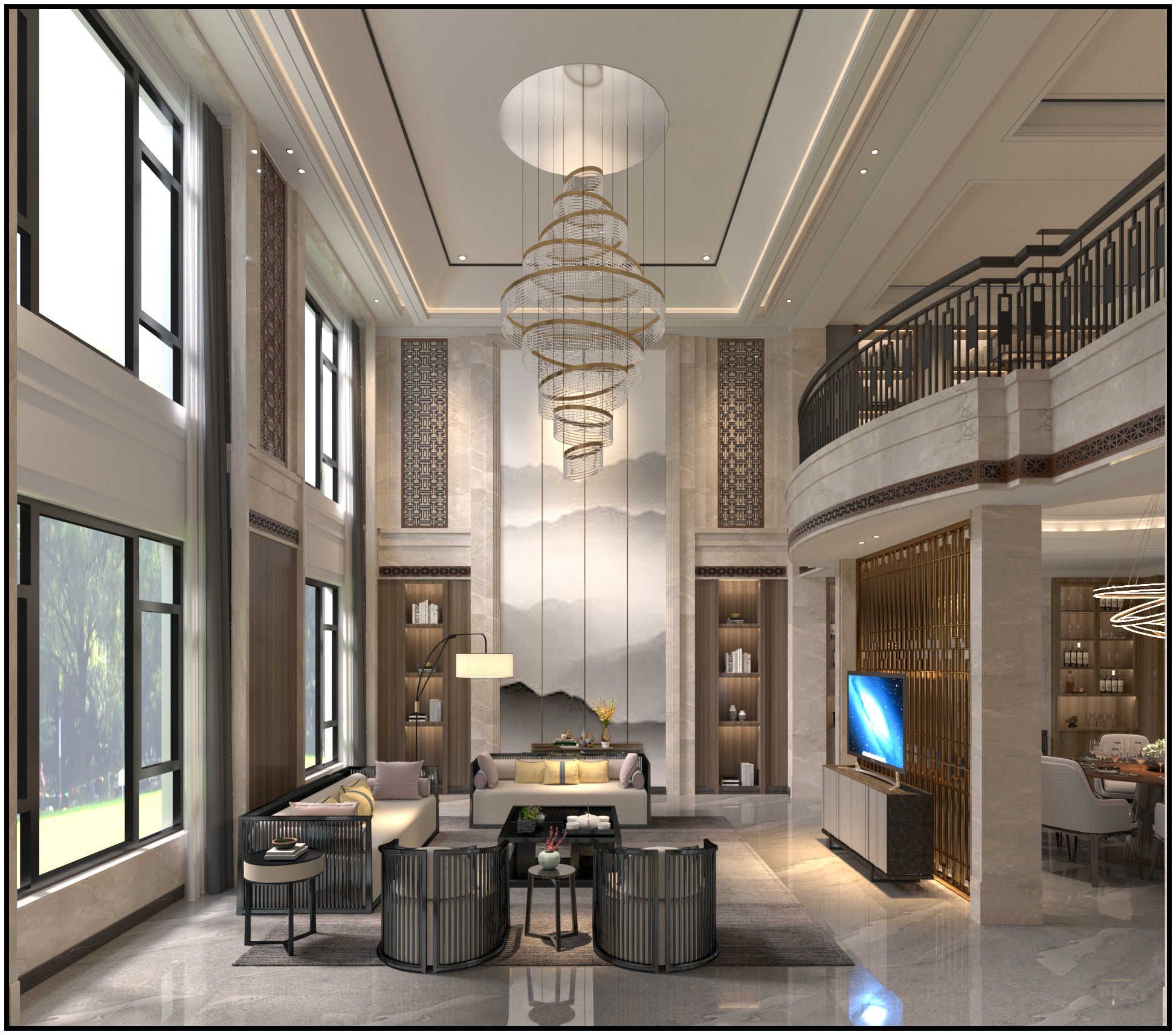 淮安開發區自建別墅別墅新中式風格裝修效果圖