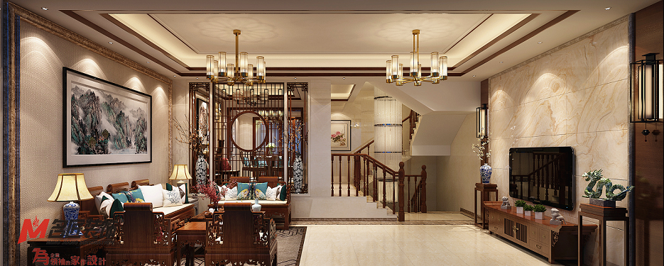 日照敏捷別墅新中式風(fēng)格裝修效果圖