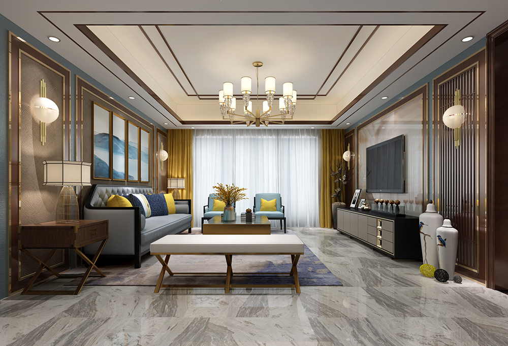 梅州萬象江山三居新中式風格裝修效果圖