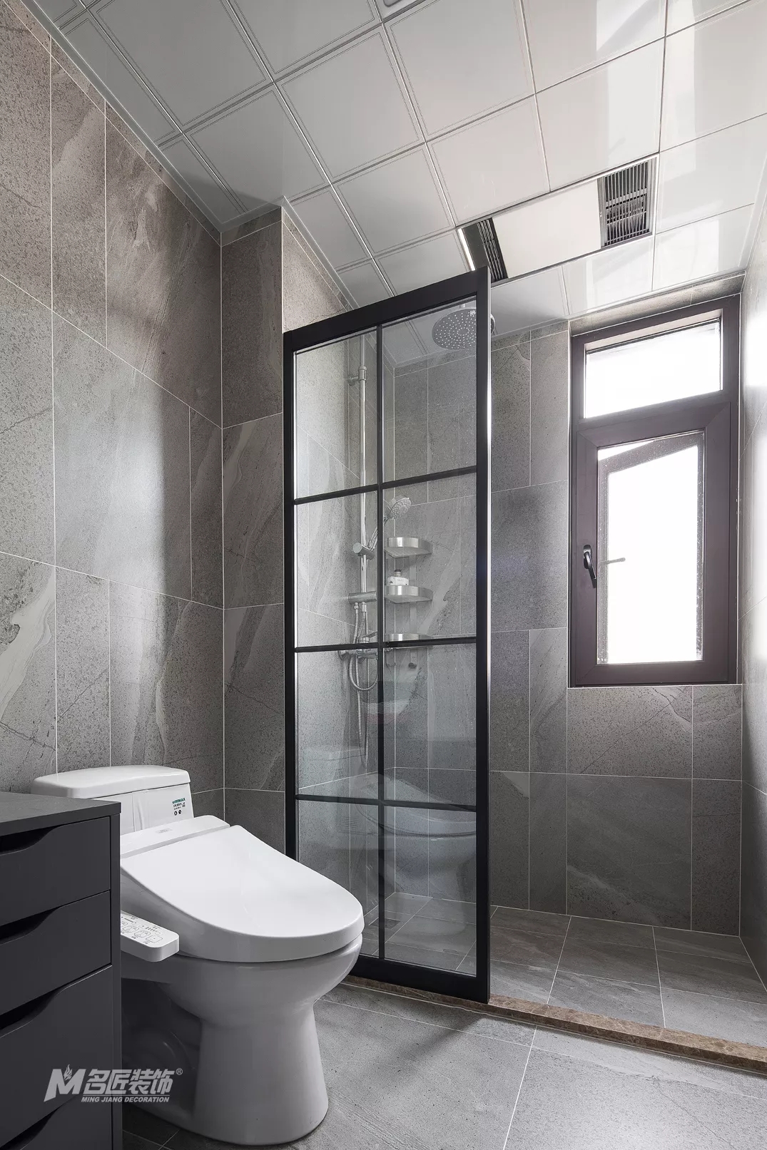 主臥套房內的衛生間,延續整體風格的高級灰色調,彰顯時尚潮流的同時,也顯得空間更加干凈整潔。