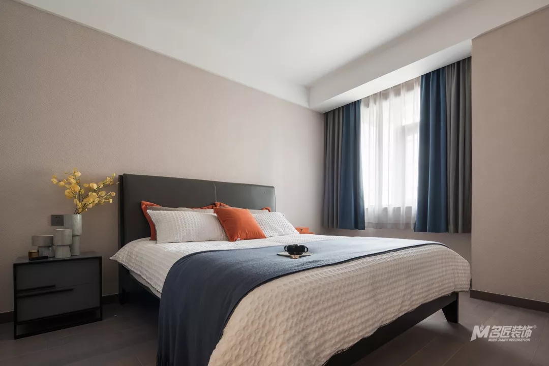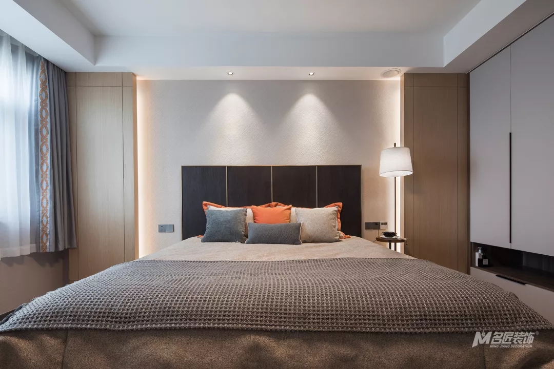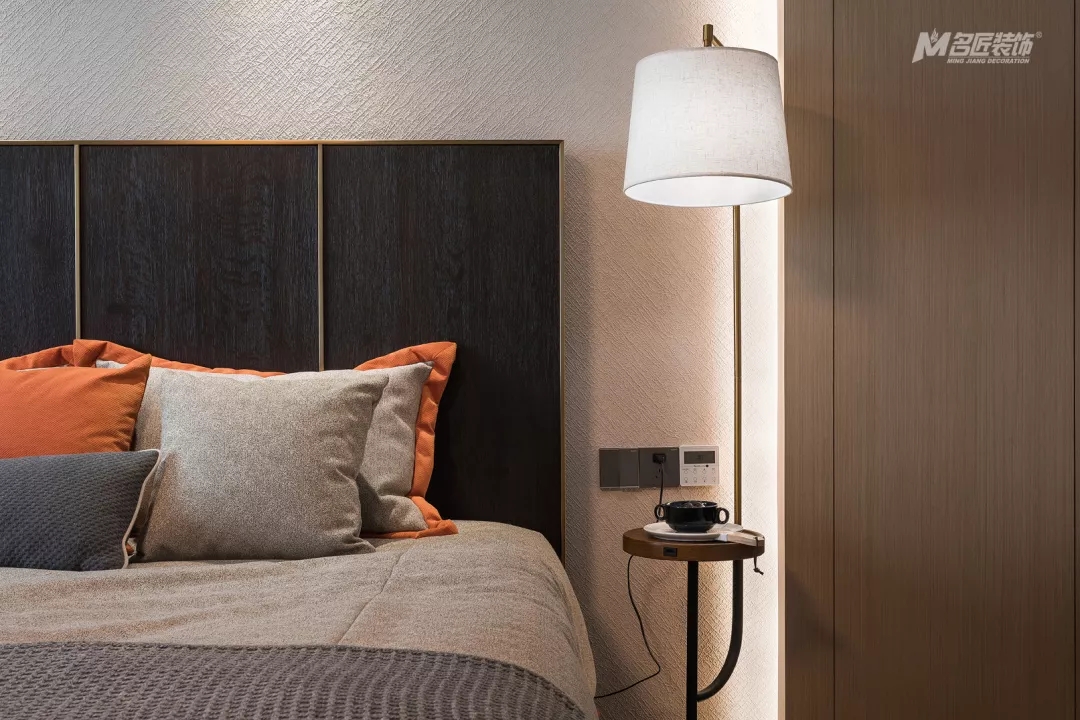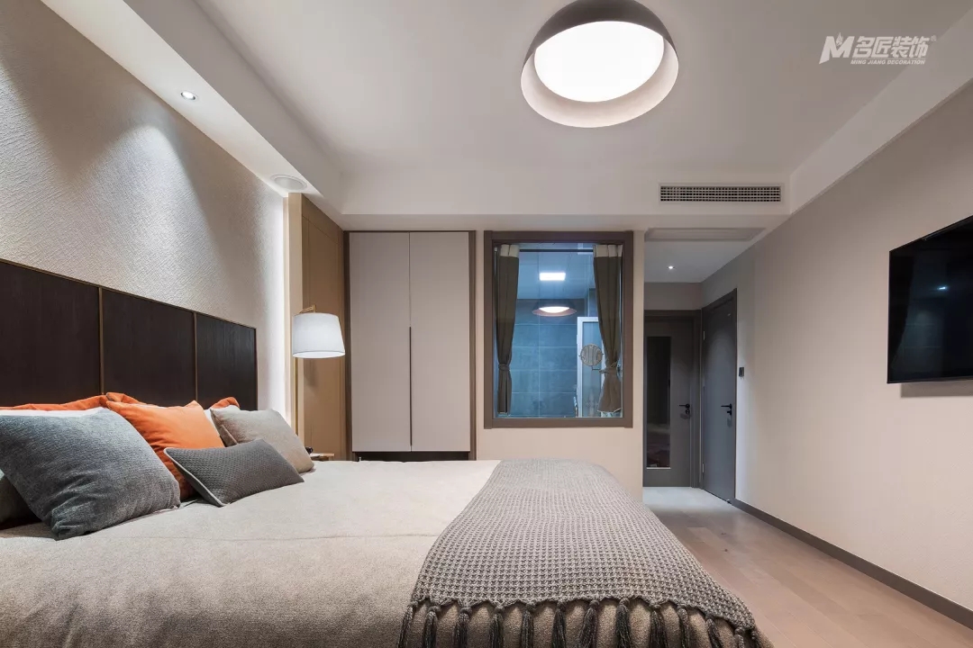 主臥的吊燈簡約時尚,整個房間的設計簡單但很有質感和品味。
