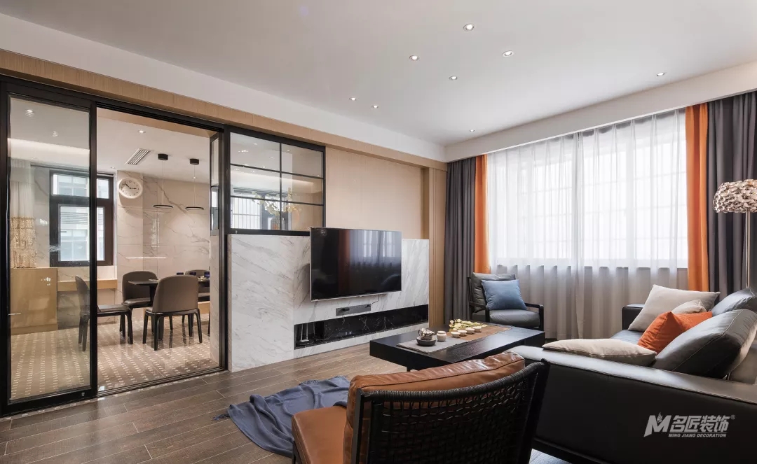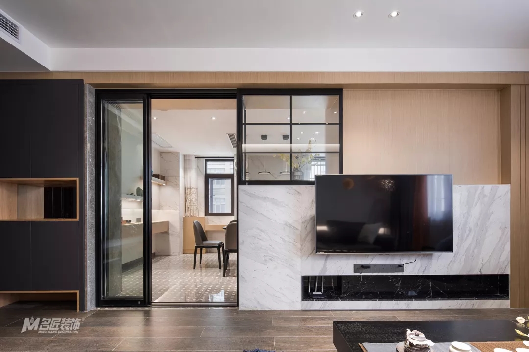 市面上電視背景墻千變萬化,各有各的風韻,而在為業主設計靚家時,我們的設計師巧妙的利用半高大理石背景墻進行隔斷改造,還為空間增加了收納儲存的地方,可謂兼具著美觀與實用,接下來就帶領大家去看看吧。